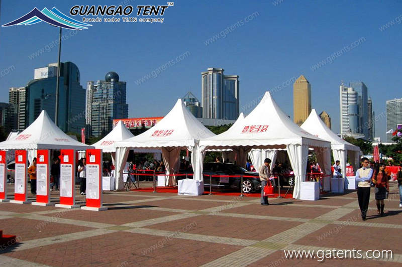 Las carpas pagoda son ampliamente utilizadas en depósitos temporales, fábricas, construcciones temporales, carpas de exhibición, carpas de construcción, socorro de emergencia, etc.