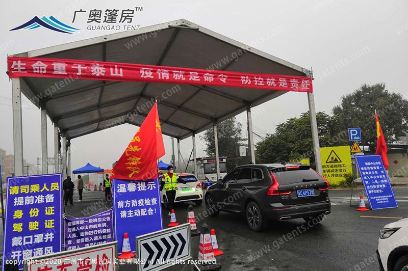 我國疫情期間,全國各地抗疫進(jìn)行時,但少不了戶外檢疫工作,高速路上、各種牌坊進(jìn)出口等等,檢疫工作妥善,是為人民服務(wù)中關(guān)鍵點(diǎn)。所以,搭建起篷房使用,能遮陽擋雨,保證了檢疫工作能順利進(jìn)行。