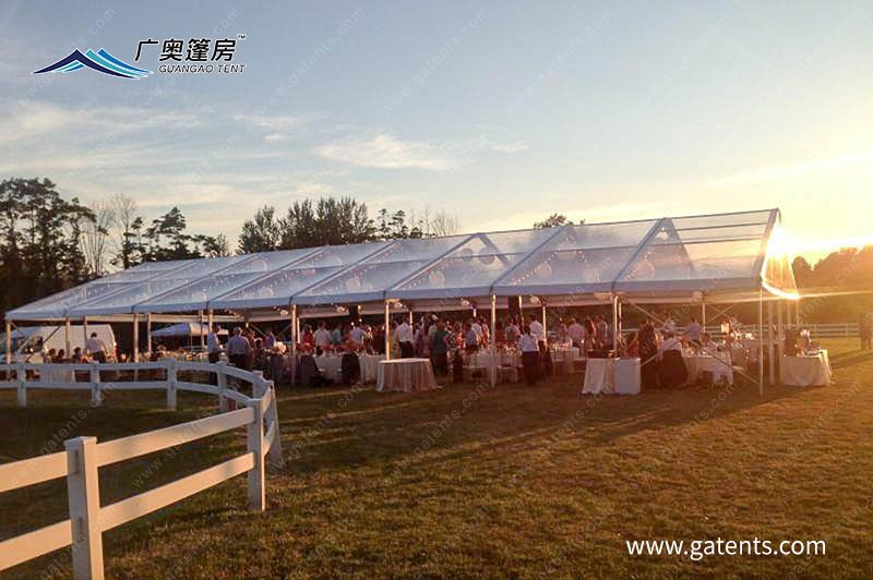 廣奧建造餐廳篷房造型多,包含人字形、拱形、弧形、球形、組合型等等。篷房材料:PVC篷布、鋼化玻璃墻、ABS墻體、高強度純6061-T6鋁合金框架等。使用壽命長達20多年,室內配套齊全,篷房結構穩(wěn)固耐用。