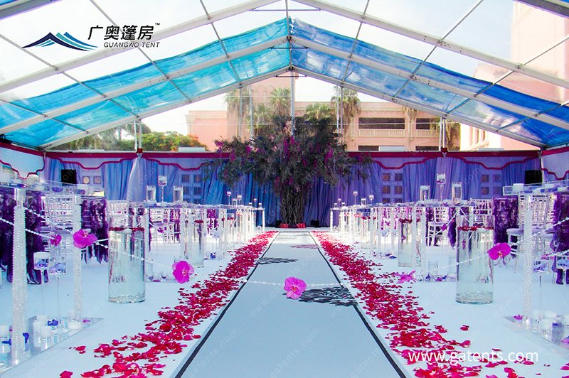 現(xiàn)在都是流行舉辦戶外喜宴婚禮,一方面可利用空間大,一方面能達(dá)到準(zhǔn)新人預(yù)期想要的布置與設(shè)計(jì),創(chuàng)意無限;所以,舉辦戶外宴會(huì)婚禮就會(huì)對(duì)臨時(shí)建筑急需,那宴會(huì)篷房一直以來都成為城市與農(nóng)村喜宴的主流建筑。受大眾青睞!
